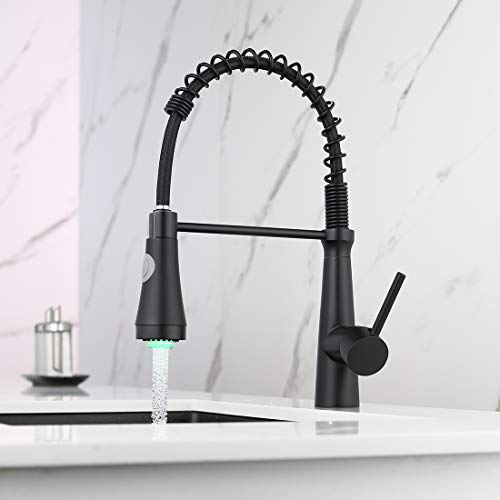 Customer reviews WANMAI Kitchen Faucet with Pull Down Sprayer Commercial Single Handle High Arc Sink Faucets, Matte Black with LED Light
